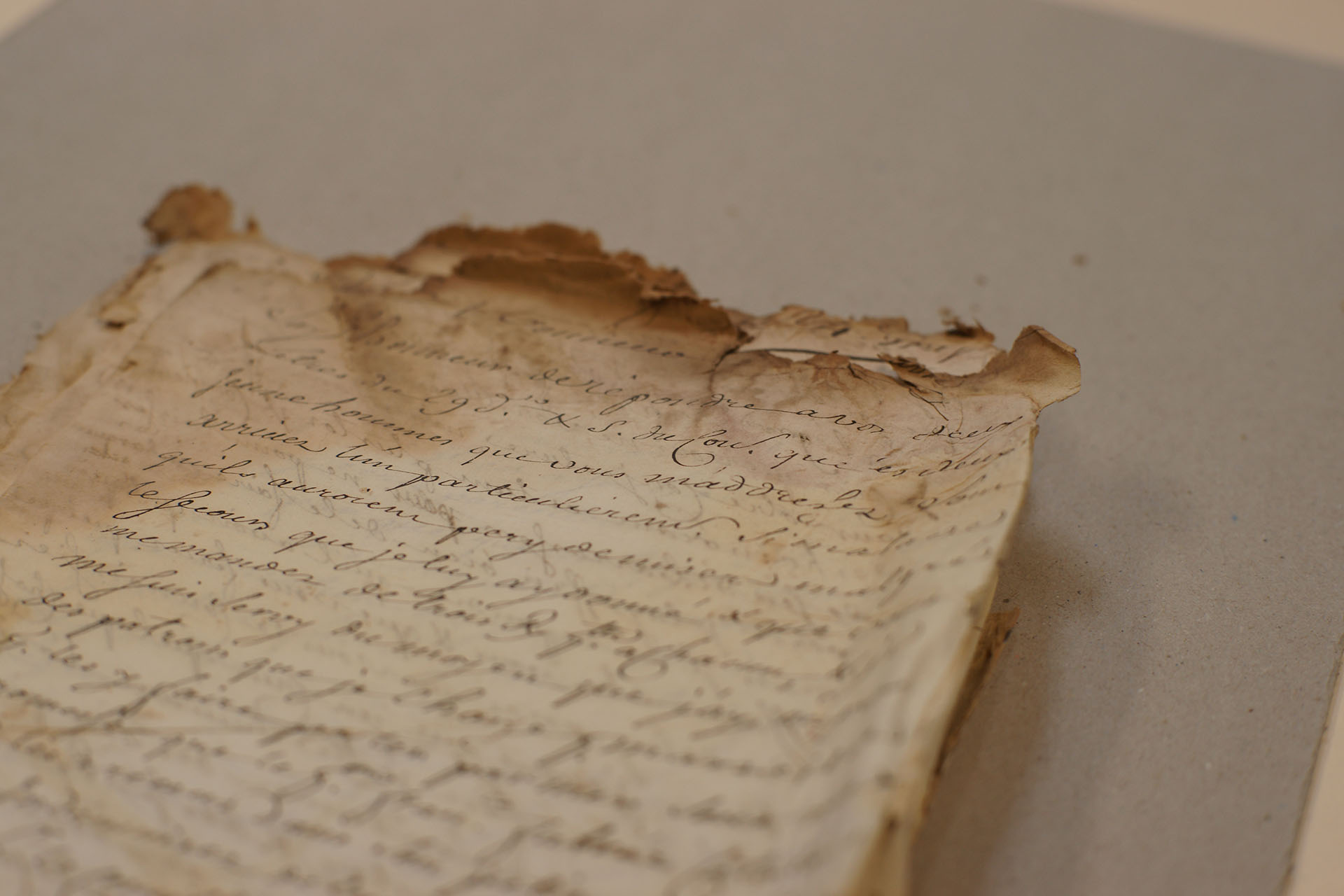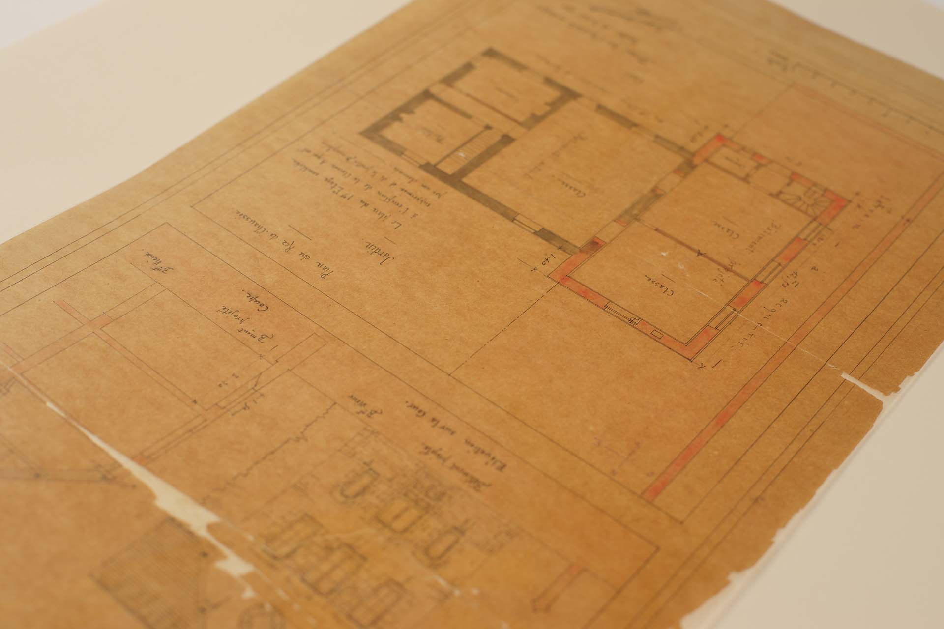 Les documents figurés, tels que les plans, calques, gravures, affiches, et autres illustrations, sont des pièces précieuses conservées dans des archives, musées et bibliothèques et qui demandent une attention spécifique. En effet, la diversité des papiers, des formats et des techniques d’illustration fait que chaque document présente ses propres défis. Après analyse de ses caractéristiques, le restaurateur saura adapter son protocole de nettoyage, mise à nu, encollage, séchage…. En adaptant toujours nos méthodes de restauration au document, nous proposons des doublages localisés ou en plein, réalisés avec divers papiers japonais et à la colle d’amidon. Certains documents peuvent également être entoilés, selon les besoins et les demandes.